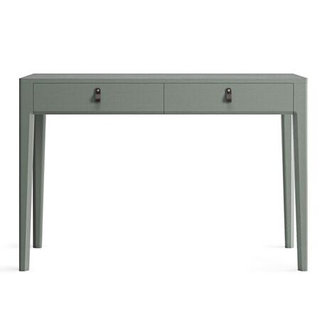 Универсальный консольный стол, который уверенно выполнит функцию косметического столика. Компактные габариты позволяют использовать стол в узком холле или небольшой комнате, а утонченный образ модели поддержан оригинальной фрезеровкой ножек и ручками из натуральной кожи, выполненными вручную мастерами The IDEA.